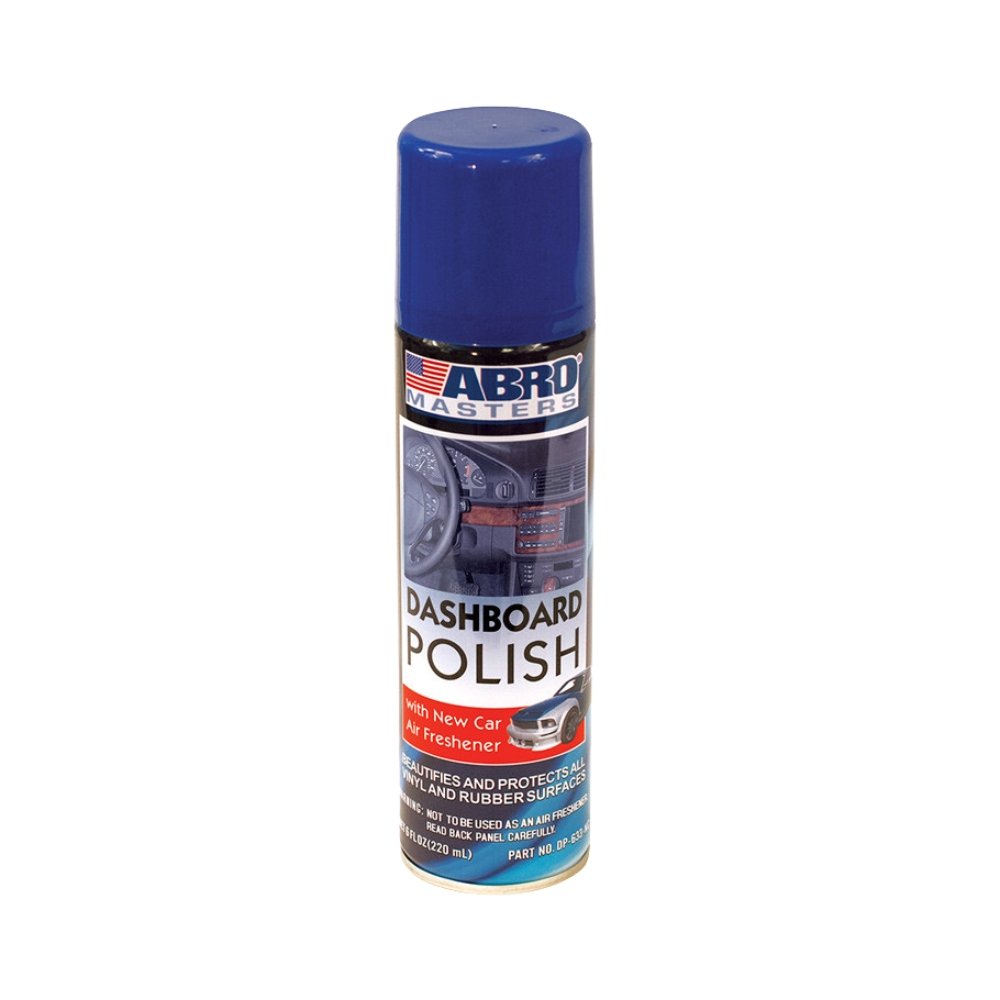 El lustrador de tablero ABRO, aroma carro nuevo, sirve para frenar el deterioro de superficies vinílicas en automóviles, brindando una barrera protectora frente a los rayos UV del sol.