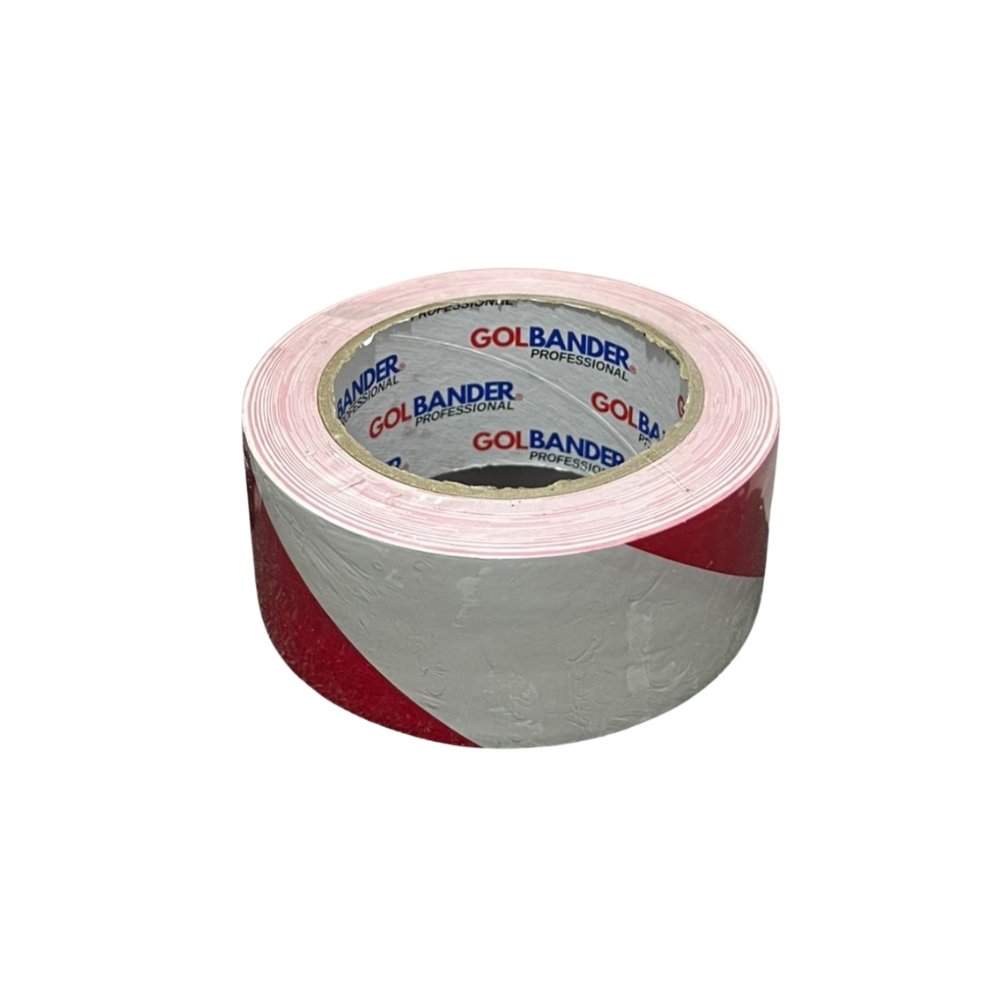 La cinta de seguridad rojo con blanco Golbander Professional sirve para delimitar áreas de trabajo, espacios industriales y señalización en escaleras, pasillos y demás.