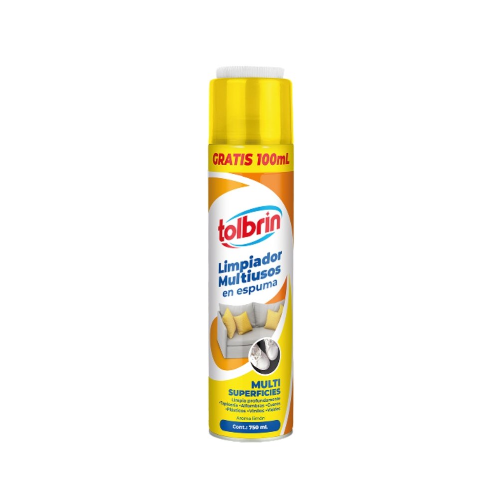 El limpiador multiusos Tolbrin, botella de 750 ml, es un espumante que sirve para remover suciedad y manchas en diferentes superficies con unas cuantas pasadas. Cuenta con una tapa cepillo con cuerdas de plástico que ayudan a mejorar las zonas tratadas en minutos.