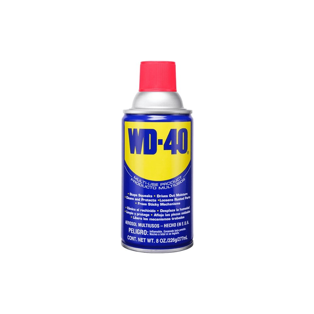 El lubricante WD-40 8 onzas Multiuso Original es útil para aflojar, prevenir y eliminar el óxido en diferentes herramientas, metales y piezas industriales.