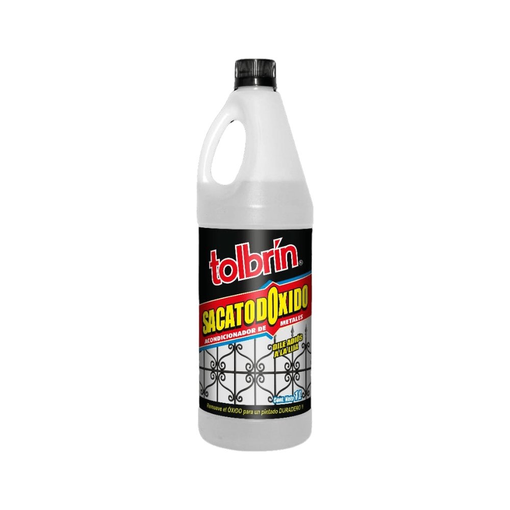 El saca óxido Tolbrin, botella de 1 litro, sirve para realizar trabajos de limpieza y restauración de superficies metálicas con el objetivo de frenar la corrosión sin la necesidad de lijar en exceso. Su fórmula permite reparar superficies en mal estado y alargar su durabilidad.